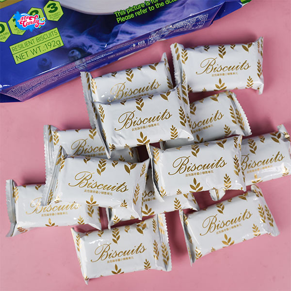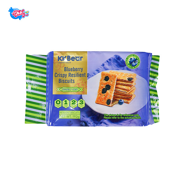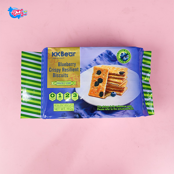 Bánh quy giòn vị việt quất KKBEAR, phủ lớp đường nhẹ bên trên tạo vị ngọt dịu, cắn vào tan nhanh và không bị khô. Nhân việt quất chua ngọt vừa phải, ăn dễ chịu, có thêm miếng việt quất sấy nhỏ giúp tăng cảm giác thật và không bị ngán.