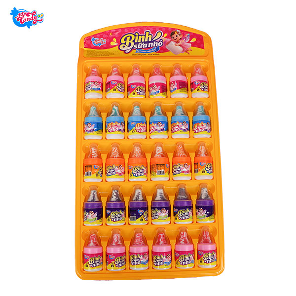 Kẹo bình sữa bé ngoan (kẹo mềm trái cây): Đường trắng, siro glucose, tinh bột xử lý bằng axit, đường dịch chuyển (sorbitol – INS 420), nước ép cô đặc táo, dâu tây, việt quất, đào, cam, chanh, dứa, chất điều chỉnh độ axit (axit citric – INS 330, axit DL-malic – INS 296, natri citrat – INS 331), màu thực phẩm tổng hợp (INS 1500, INS 110, INS 102, INS 129, INS 133, INS 171), sáp ong, hương liệu thực phẩm, vanillin.