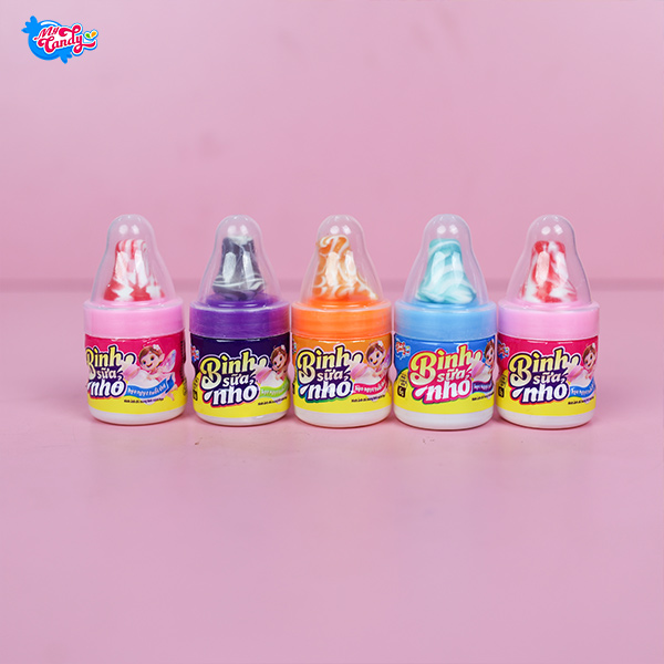 Kẹo bình sữa bé ngoan (kẹo cao su): Đường trắng, glucose, nền gum, siro glucose, chất phụ gia thực phẩm (sorbitol – INS 420, lecithin đậu nành – INS 322, glycerol – INS 422, axit citric – INS 330, axit DL-malic – INS 296, gum arabic – INS 414, sơn mài cánh kiến – INS 904, sáp carnauba – INS 903, titan dioxit – INS 171, đỏ allura – INS 129, vàng cam – INS 110, vàng chanh – INS 102, xanh sáng – INS 133), hương liệu thực phẩm.