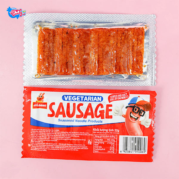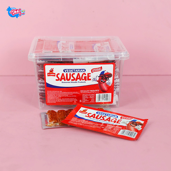 Xúc xích chay J-LOONG là món ăn vặt cay cay rất được các bạn nhỏ yêu thích nhờ hương vị đậm đà, dễ ăn.